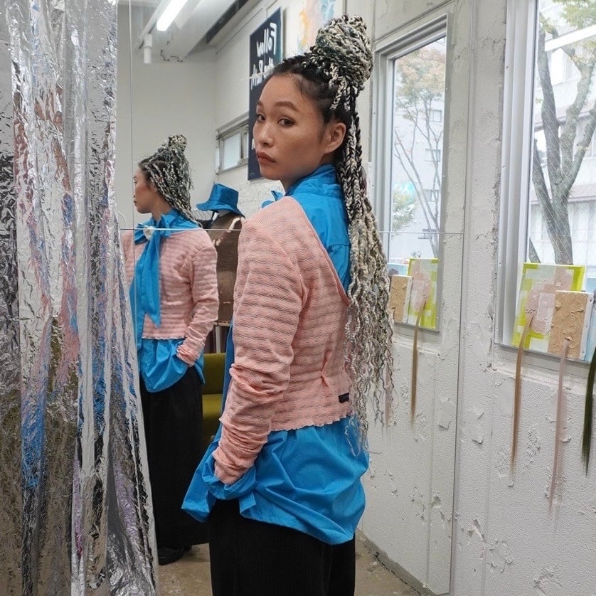 ルーズな袖の長さが印象的なトップス。